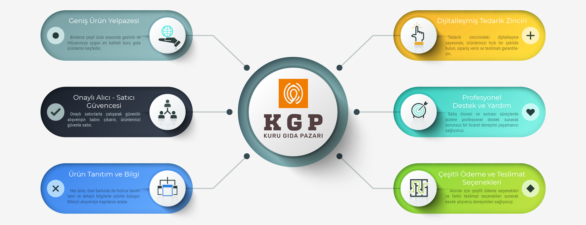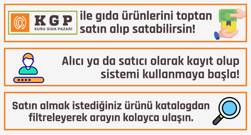 Kuru Gıda Pazarı profesyonel bir toptan pazar yeridir. Operasyonel hizmetlerde lokal çalışmalarımız ile sizlere nakliye ve kargo sorunu yaşatmadan, ürün bazlı tanıtıcı kataloğumuz ve uzman destek ekibimiz ile avantajlı hizmet vermeye devam ediyoruz. Kalite standardımız, diğer pazar yeri uygulamalarına göre çok daha kaliteli ve müşteri odaklıdır. Satıcılar ve alıcılar vergi levhalarını beyan ederek sisteme kayıt olabilmektedirler. Dolayısıyla her şey kontrolümüz altındadır. Operasyon temsilcilerimiz siparişlerinizi 24 saat kontrol etmekte, ekiplerimiz süreçleri aksamadan müdahale ve yürütücü görevini üstlenmektedir. Kullanacağınız sistem diğer pazar yeri uygulamalarına göre çok daha detaylı verilere, çok daha kolay kullanımlı kullanıcı kolaylığı sağlayan arayüzümüz ile fark yaratıyoruz. Seçeceğiniz ödeme tiplerine göre veya barem tiplerine göre, satıcıların oluşturduğu iskontolardan faydalanıp, kâr oranınızı yükseltebilir ve kazancınızı arttırabilirsiniz.